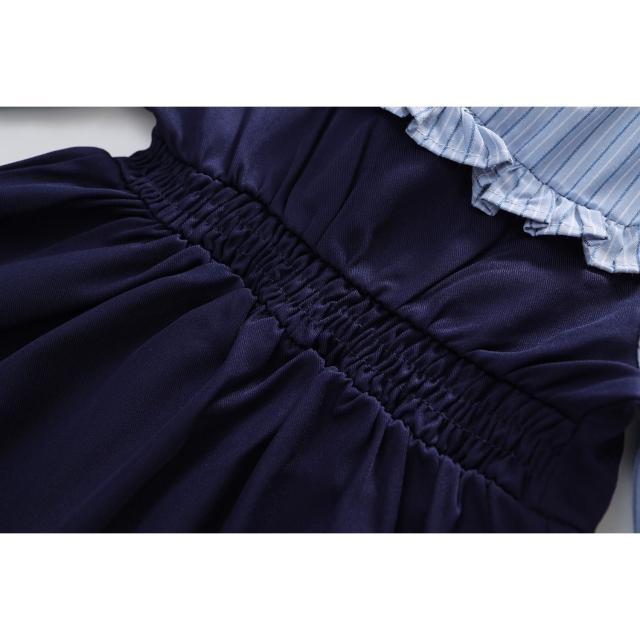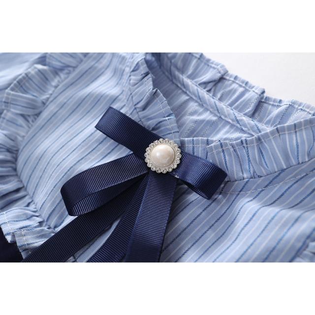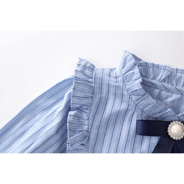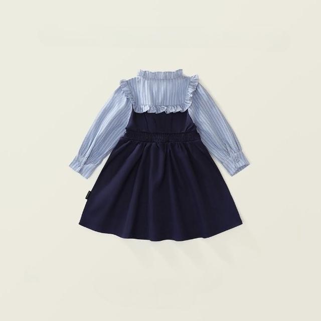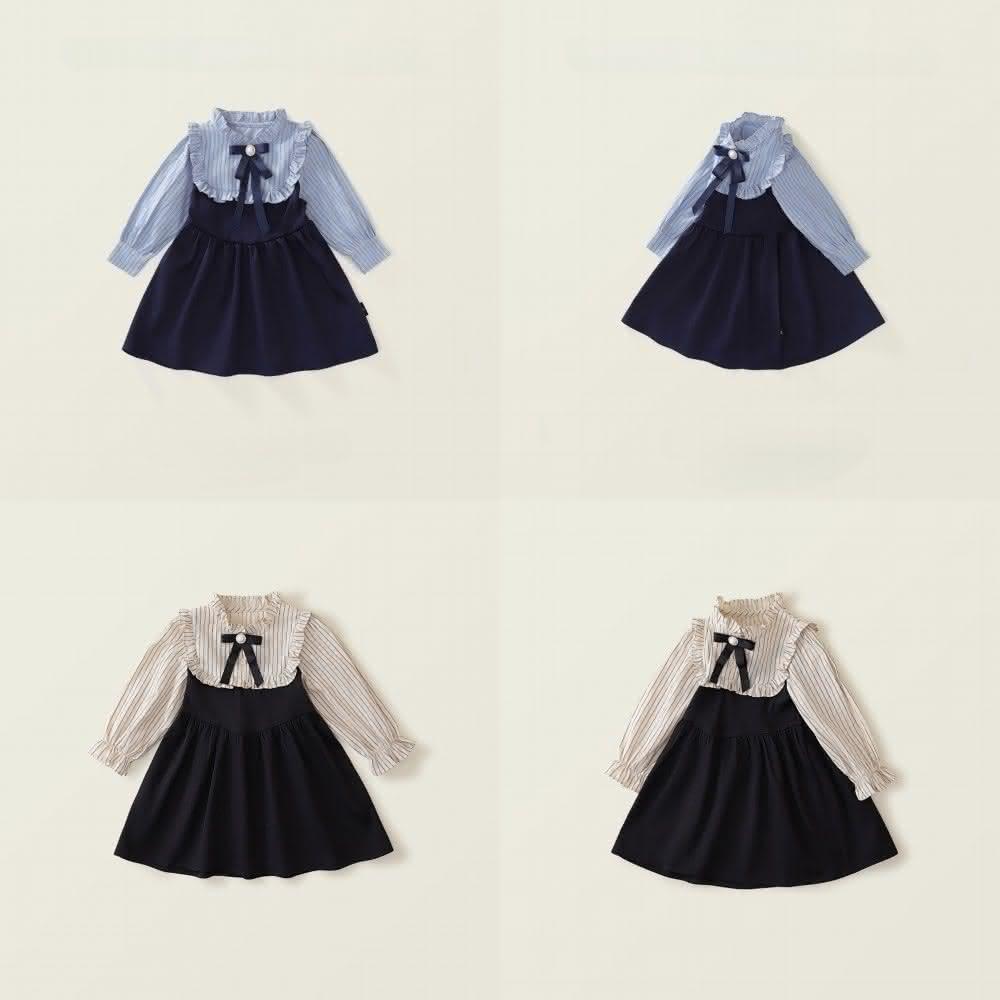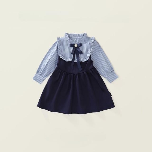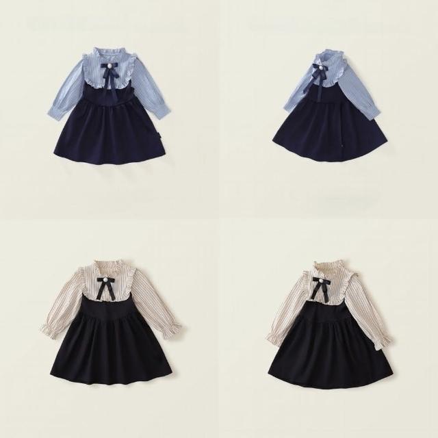 Arbea女童學院風洋裝秋季新女寶寶假兩件韓版條紋撞色長袖裙 C1017