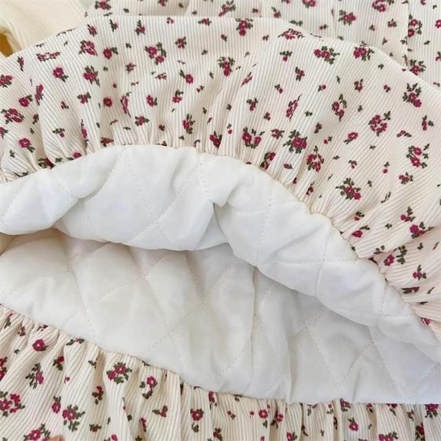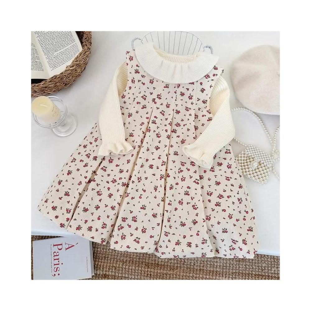 Arbea秋冬兒童女童新款西式森系小花布衣打底衣兩件式套裝連身裙針織衫 C1027