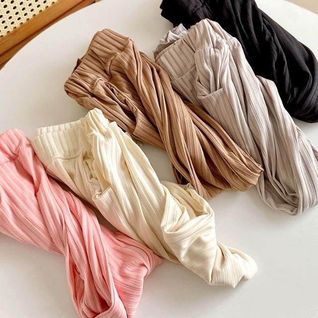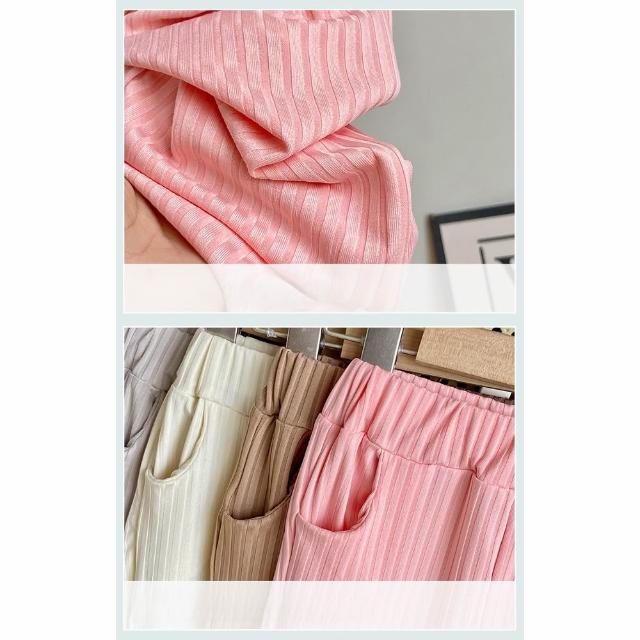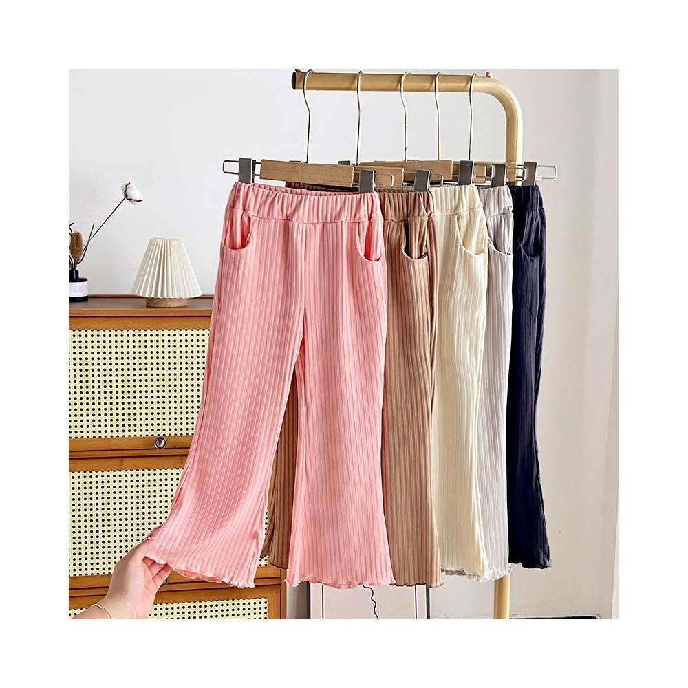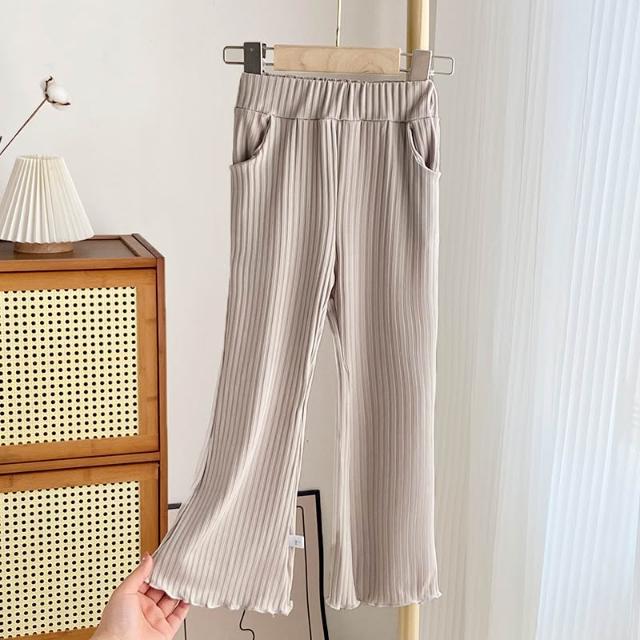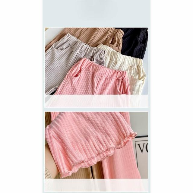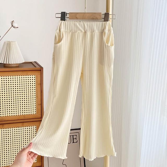 Arbea女童喇叭褲百搭兒童夏季休閒褲薄款冰絲長褲公主風木耳邊寬褲子 C1044