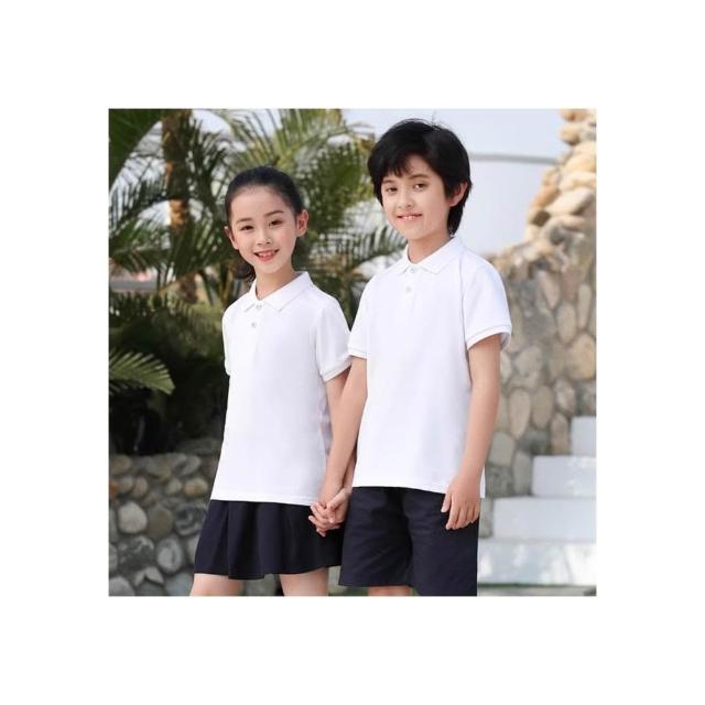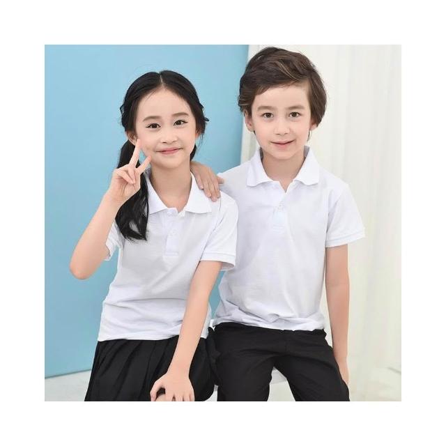 Arbea兒童POLO衫短袖白色純棉T卹大中小童男女童翻領幼兒園小學生校服 C1096