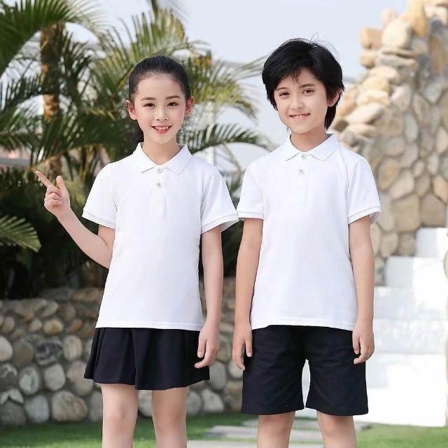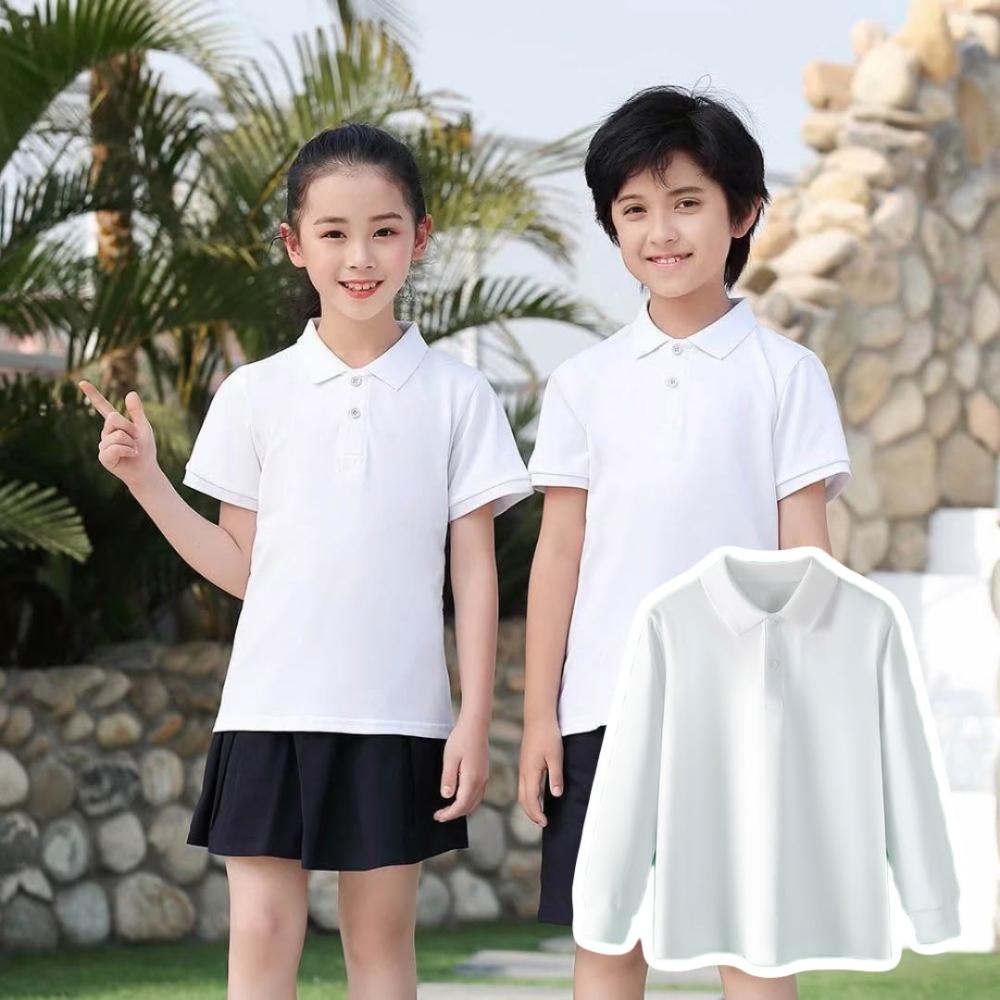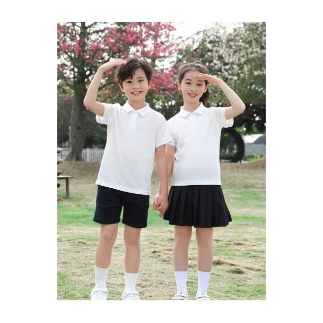 Arbea兒童POLO衫短袖白色純棉T卹大中小童男女童翻領幼兒園小學生校服 C1096