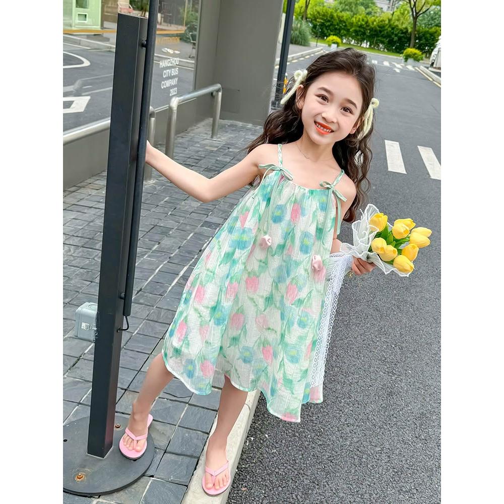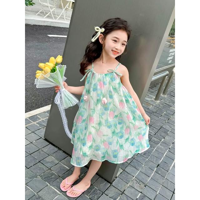 Arbea女童洋裝夏季新款清涼度假風吊帶鬱金香公主裙中小童 C1163