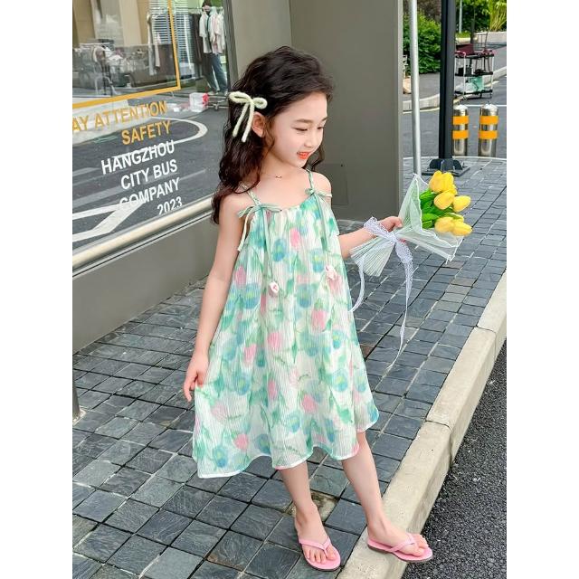 Arbea女童洋裝夏季新款清涼度假風吊帶鬱金香公主裙中小童 C1163