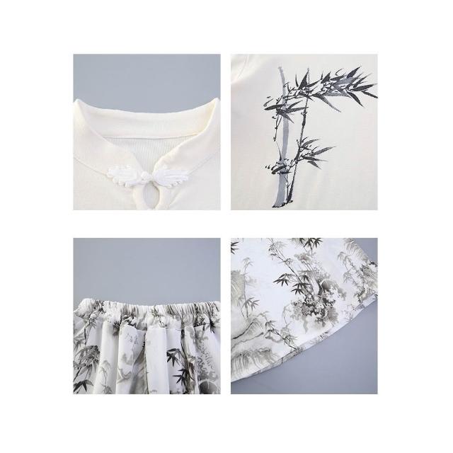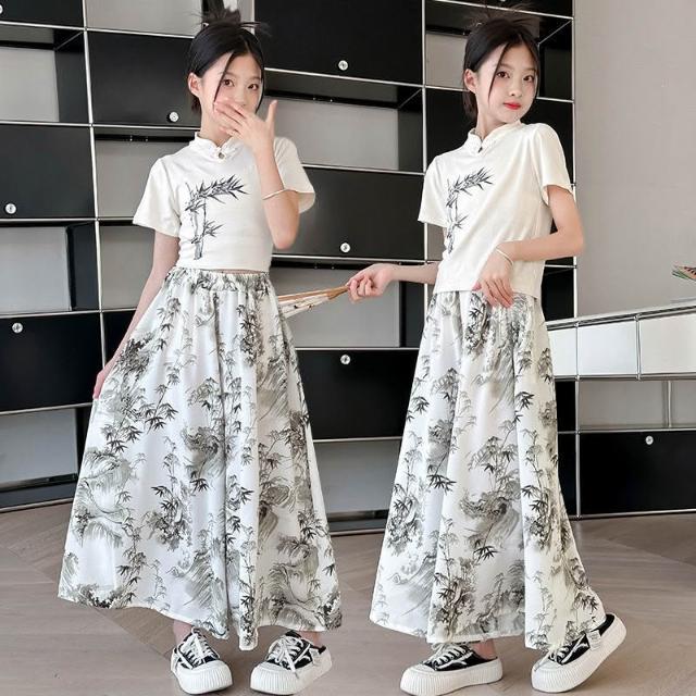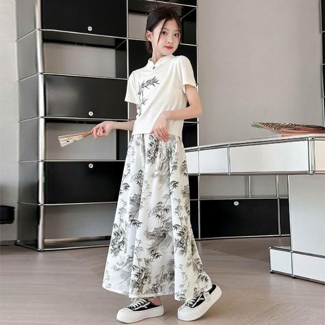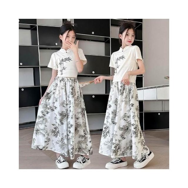 Arbea中大童120-170碼女童夏裝套裝新款洋氣中大童新中式國風兒童短袖半身裙兩件套【C1204】