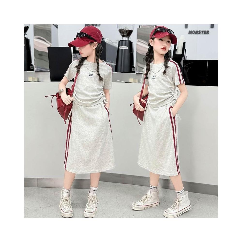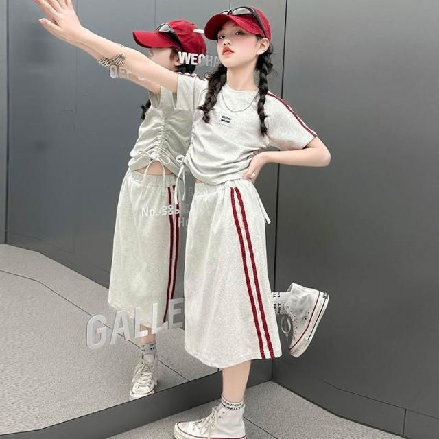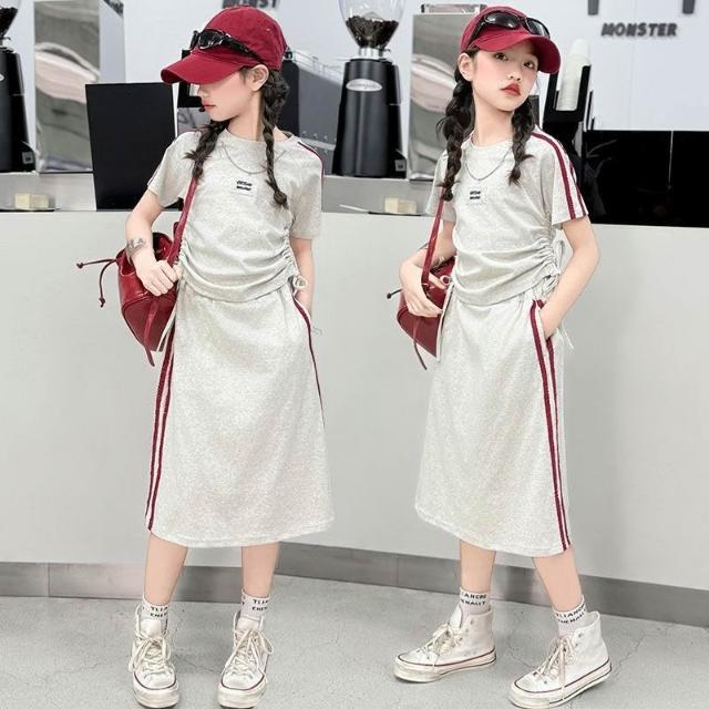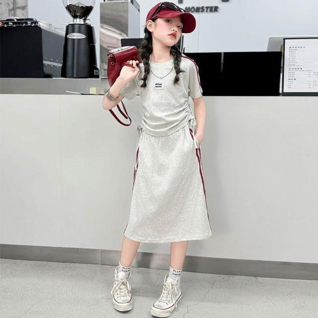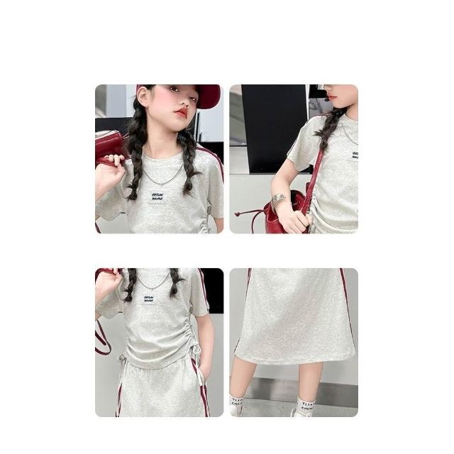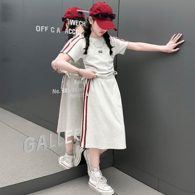 Arbea中大童120-170碼童裝夏季女童裙子套裝夏裝中大童短袖上衣半身裙兒童學院風兩件套【C1213】