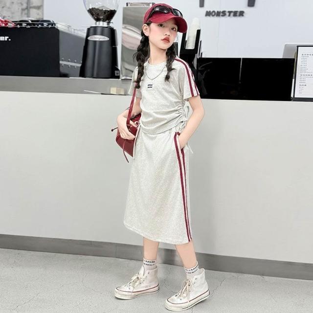 Arbea中大童120-170碼童裝夏季女童裙子套裝夏裝中大童短袖上衣半身裙兒童學院風兩件套【C1213】