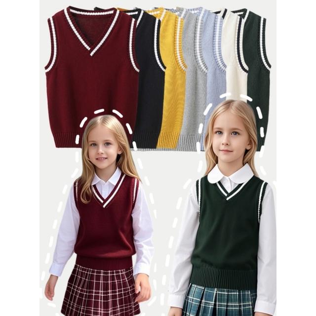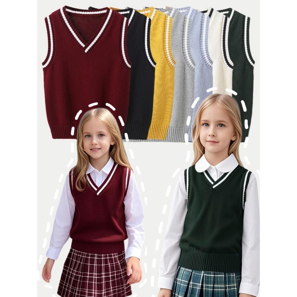 Arbea兒童針織背心春秋款中小童學校服男童女童套頭學院風背心【C1280】