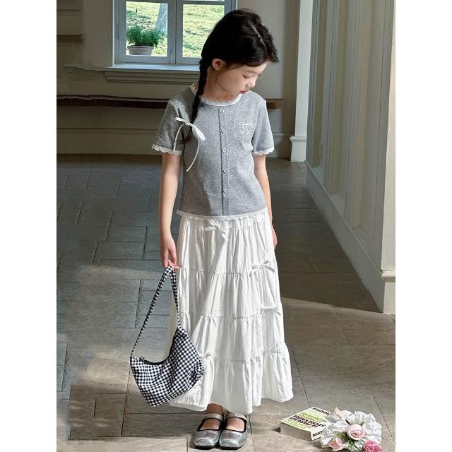 Arbea女童短袖半身裙套裝兒童夏裝T卹女孩蛋糕長裙兩件套夏季【C1358】