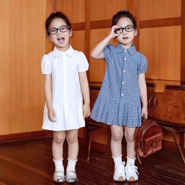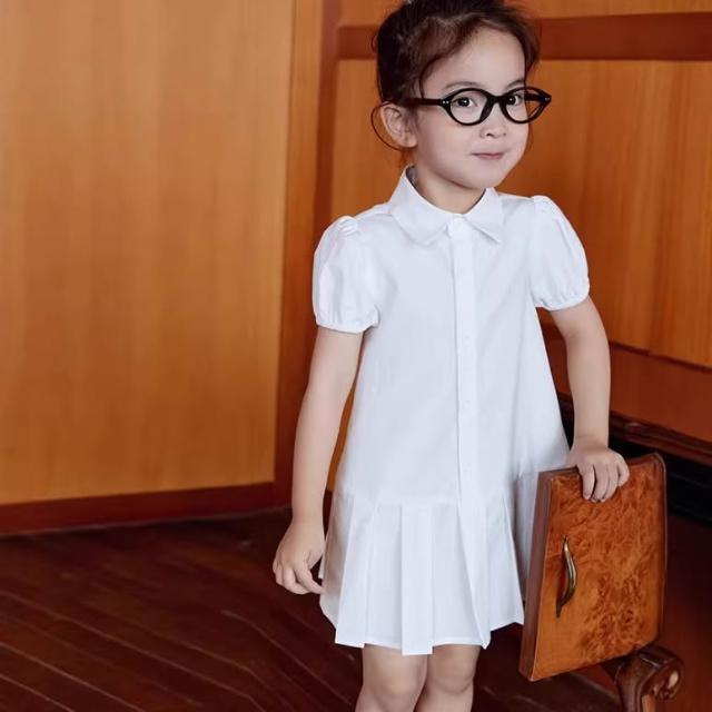Arbea兒童裝女童裙子學院風單排扣洋裝襯衫裙夏裝新款【C1392】