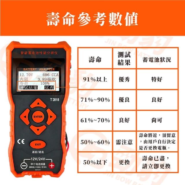 勁豹蓄電池檢測儀T28181 保固一年 電瓶 12V/24V 汽車百貨 通用內阻分析儀 電瓶診斷儀