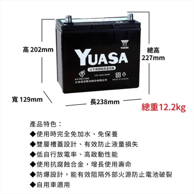 湯淺湯淺55B24L R RS LS(現貨秒出 免加水 SMF 汽車電池 密閉免保養 防爆設計 電瓶 YUASA 車用電瓶)
