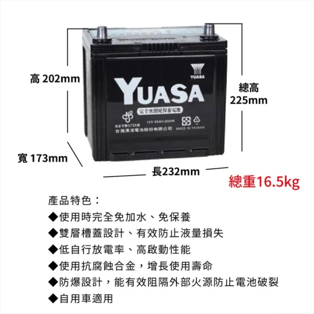 湯淺75D23L 75D23R(現貨秒出 免加水 SMF 汽車電池 密閉免保養 防爆設計 車用電瓶 電瓶 YUASA)