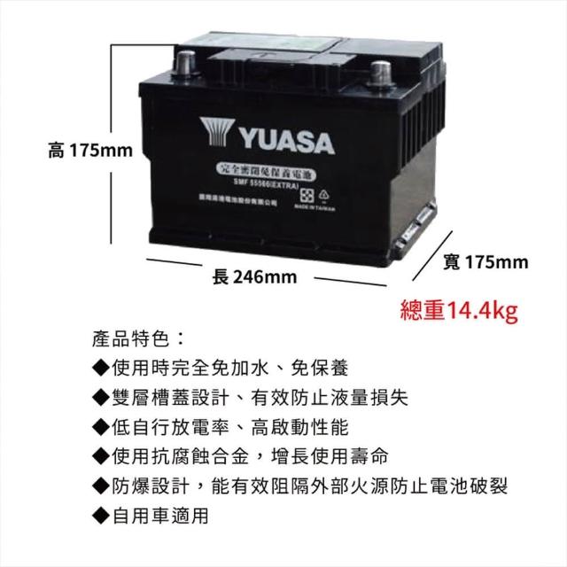 湯淺55566(密閉免保養 車用電瓶 歐規 24CM 55AH 免加水 SMF 汽車電池 防爆設計 電瓶 YUASA)