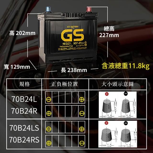 GS 統力統力GS 70B24L R RS LS(日規 同46/55B24 性能加強版 汽車 車用電瓶 免加水保養 完全密閉式)