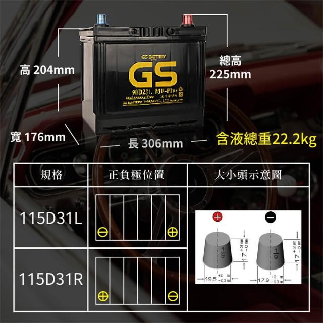 GS 統力統力GS 115D31L R(日規 85AH 性能加強版 汽車 車用電瓶 免加水保養 完全密閉式 啟動性能強化 高CCA
