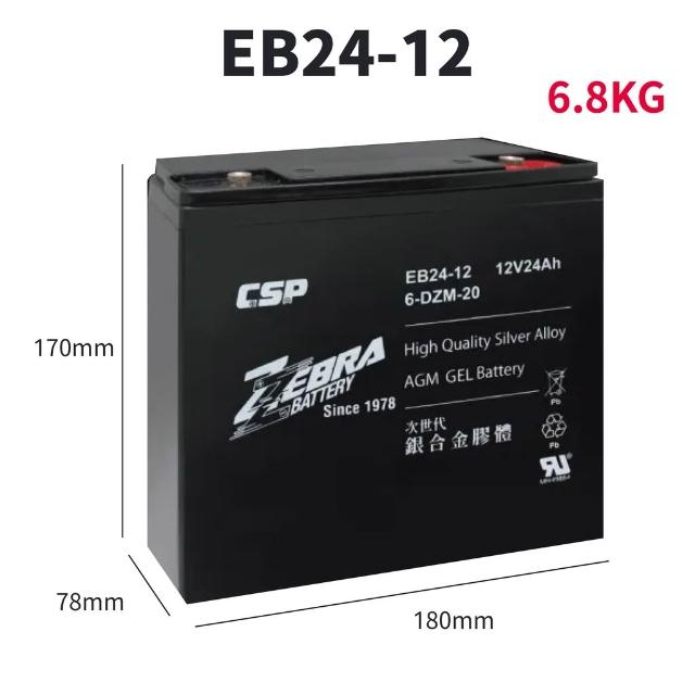ZEBRA 斑馬牌EB24-12 銀合金膠體電池12V24Ah 等同 6-DZM-20 電動車電池 REC2 勁豹電池
