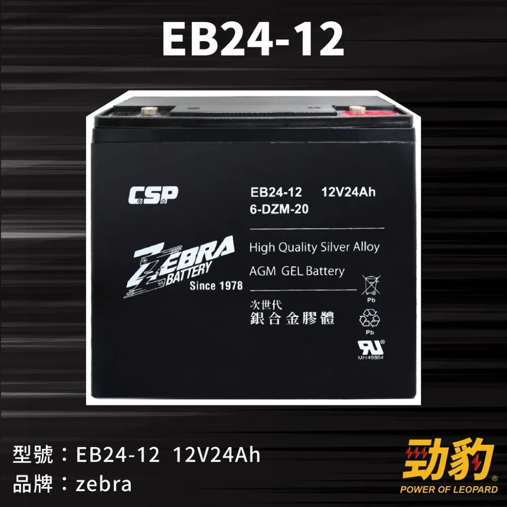 ZEBRA 斑馬牌EB24-12 銀合金膠體電池12V24Ah 等同 6-DZM-20 電動車電池 REC2 勁豹電池