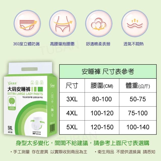 大碼安睡褲5XL 100-140公斤 安心褲 (大尺碼褲型衛生棉 滅菌後包裝 一包四入裝 日拋生理褲)