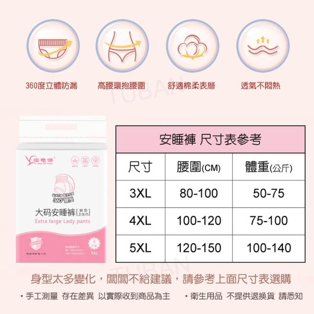 大碼安睡褲4XL 75-100公斤 安心褲 (大尺碼褲型衛生棉 滅菌後包裝 一包四入裝 日拋生理褲)
