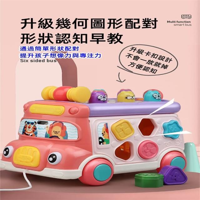 童樂園店鋪益智多功能聲光巴士小車車(益智兒童玩具 打地鼠 形狀積木配對 聯動齒輪 認知時鐘 聲光音樂)