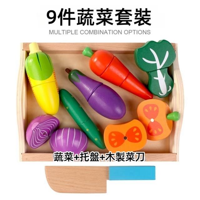 扮家家酒木製托盤蔬果肉類切切樂(益智玩具 扮家家酒玩具 切菜遊戲 甜品切切玩具 磁吸切切玩具 木製切切樂)