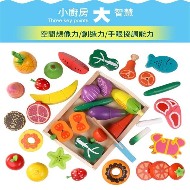 扮家家酒木製托盤蔬果肉類切切樂(益智玩具 扮家家酒玩具 切菜遊戲 甜品切切玩具 磁吸切切玩具 木製切切樂)