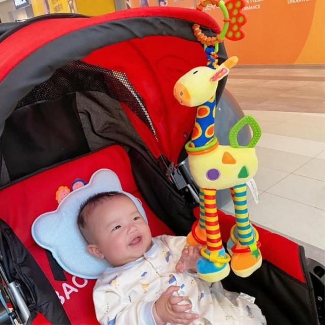 長頸鹿安撫玩偶掛件可咬固齒器(陪伴玩具 車上掛飾 響紙BB器 玩偶 寶寶安撫玩偶 推車汽車掛件玩具 嬰兒車掛件玩偶)