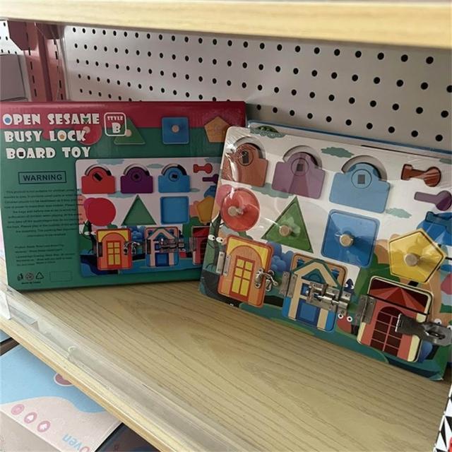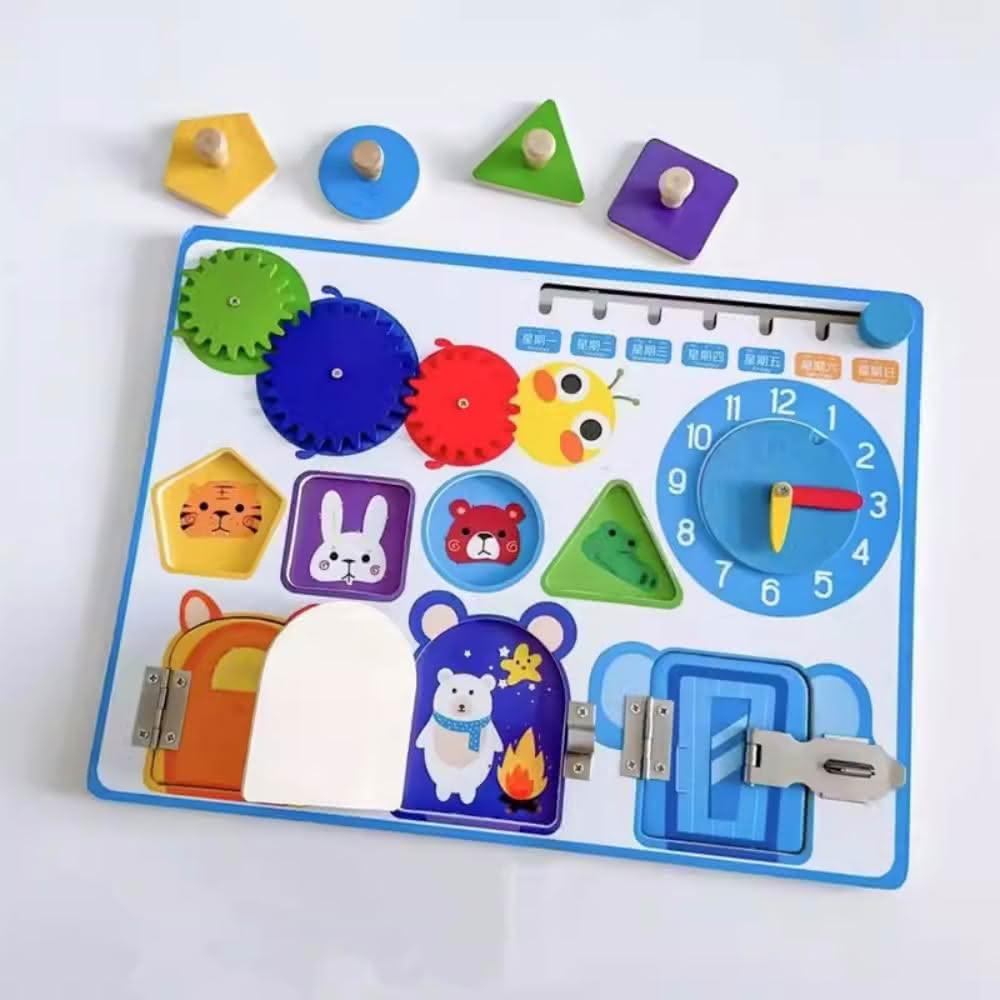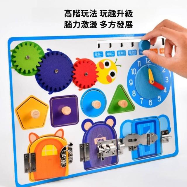 益智忙碌板木製開鎖玩具(木製益智兒童忙碌板 蒙特梭利教具蒙氏忙碌版 啟蒙玩具 早教教具 形狀顏色配對)