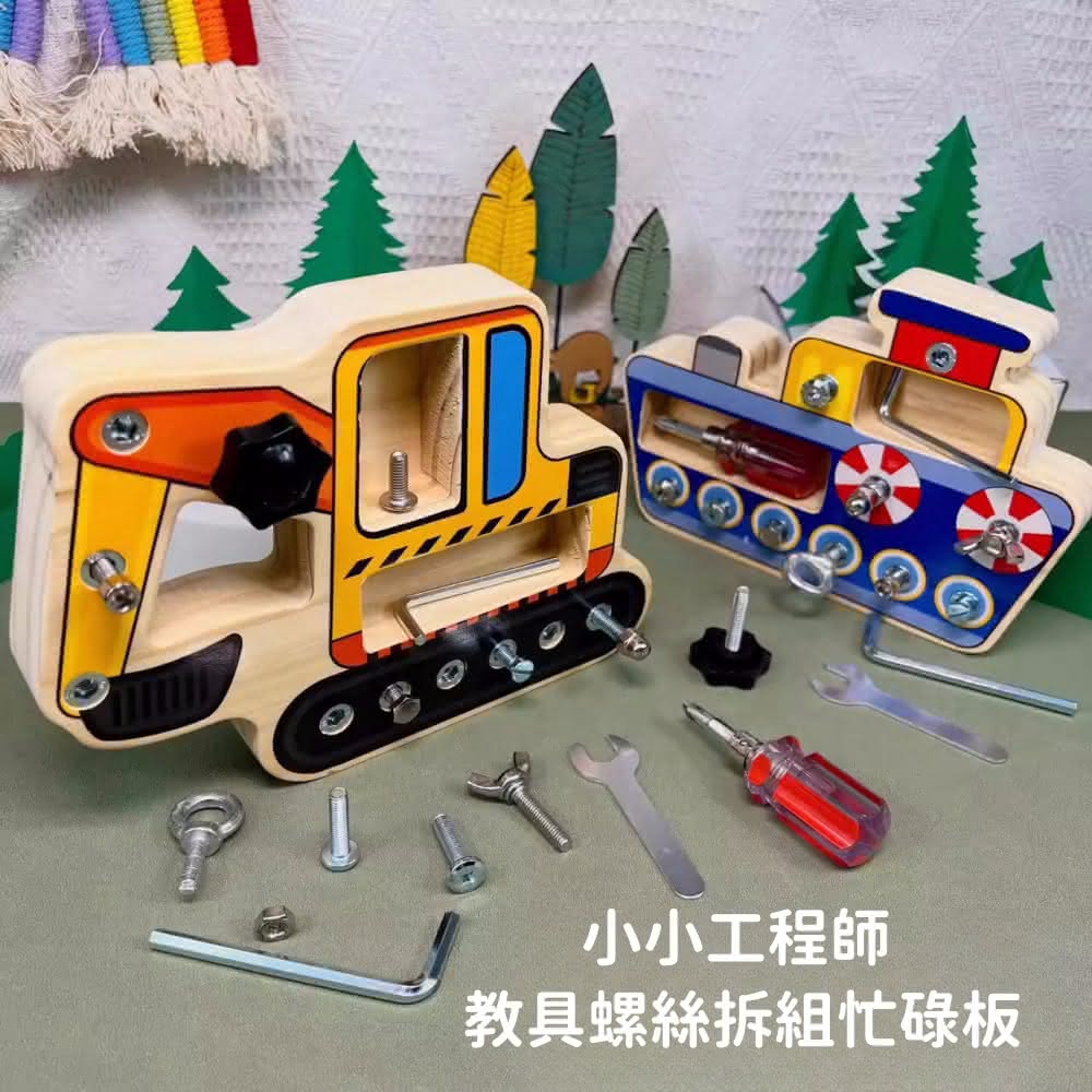 木製螺絲拆組交通教玩具(木製益智兒童忙碌板 蒙特梭利教具蒙氏忙碌板 板手工具 拆裝維修螺絲玩具)