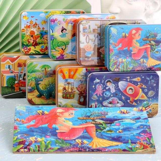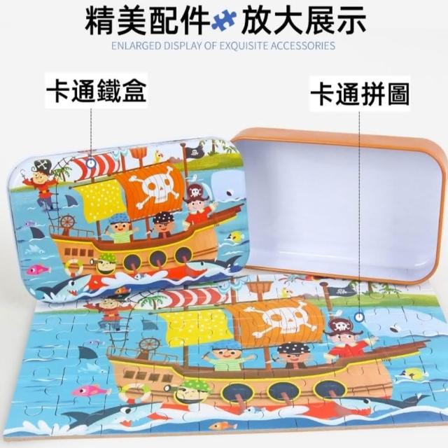 益智卡通拼圖60片鐵盒收納(兒童益智玩具 拼圖 早教玩具 小孩拼圖禮物)