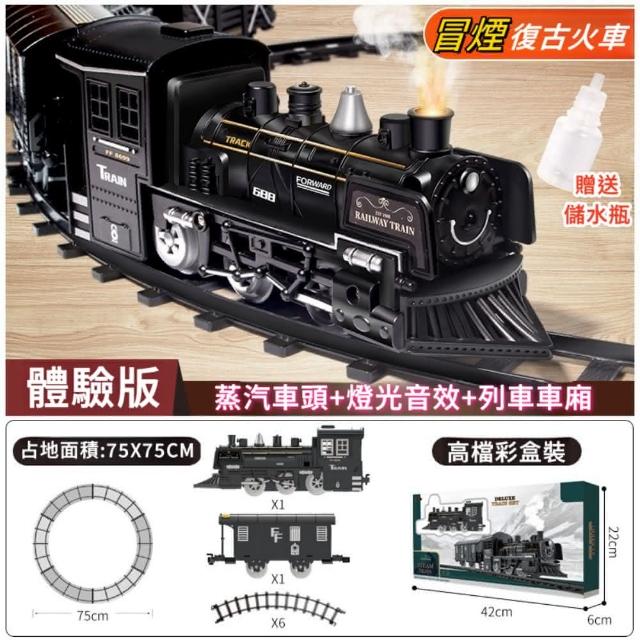 復古軌道蒸汽火車+車廂(兒童火車玩具 仿真火車 仿真復古冒煙火車頭玩具 益智噴霧火車軌道)
