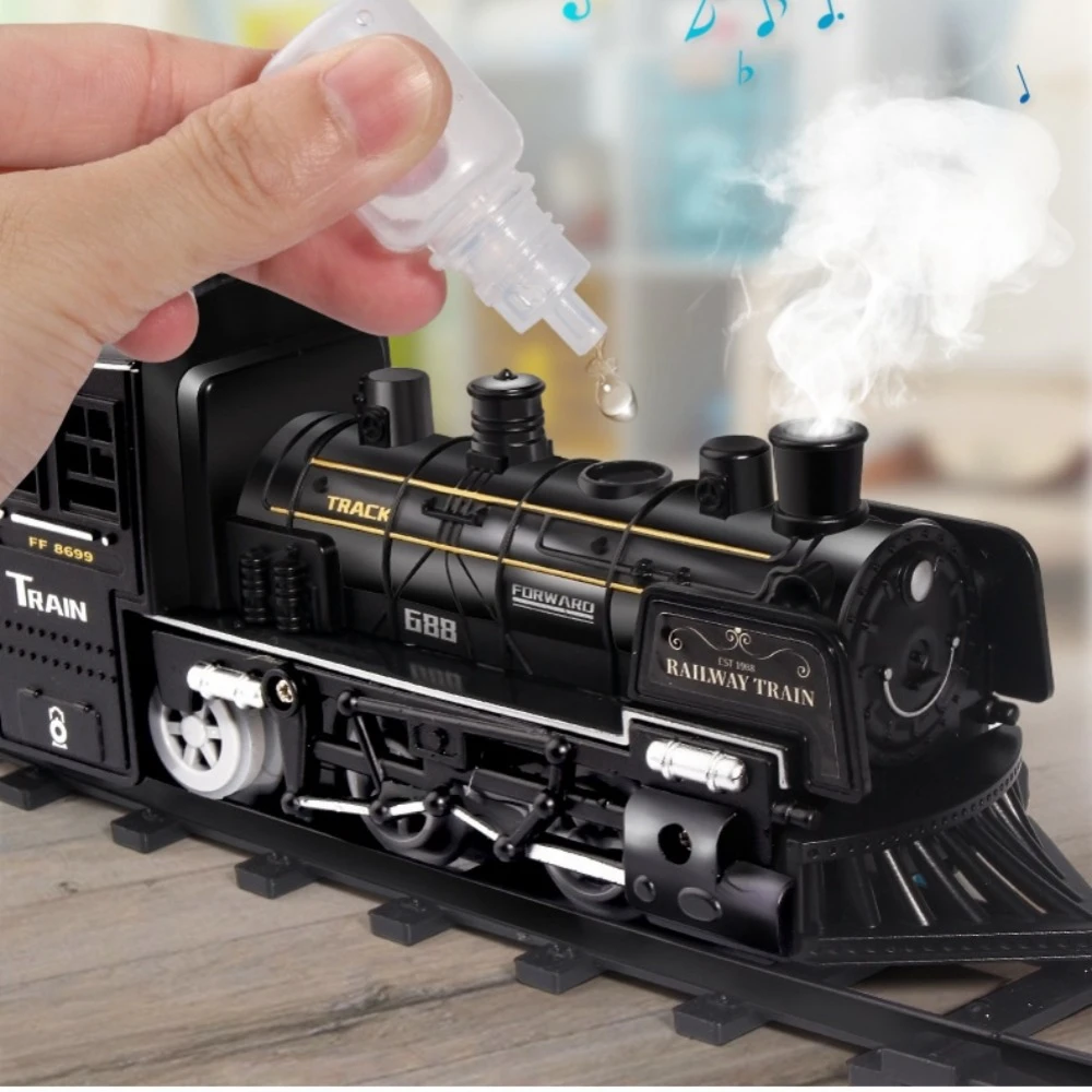 復古軌道蒸汽火車+車廂(兒童火車玩具 仿真火車 仿真復古冒煙火車頭玩具 益智噴霧火車軌道)