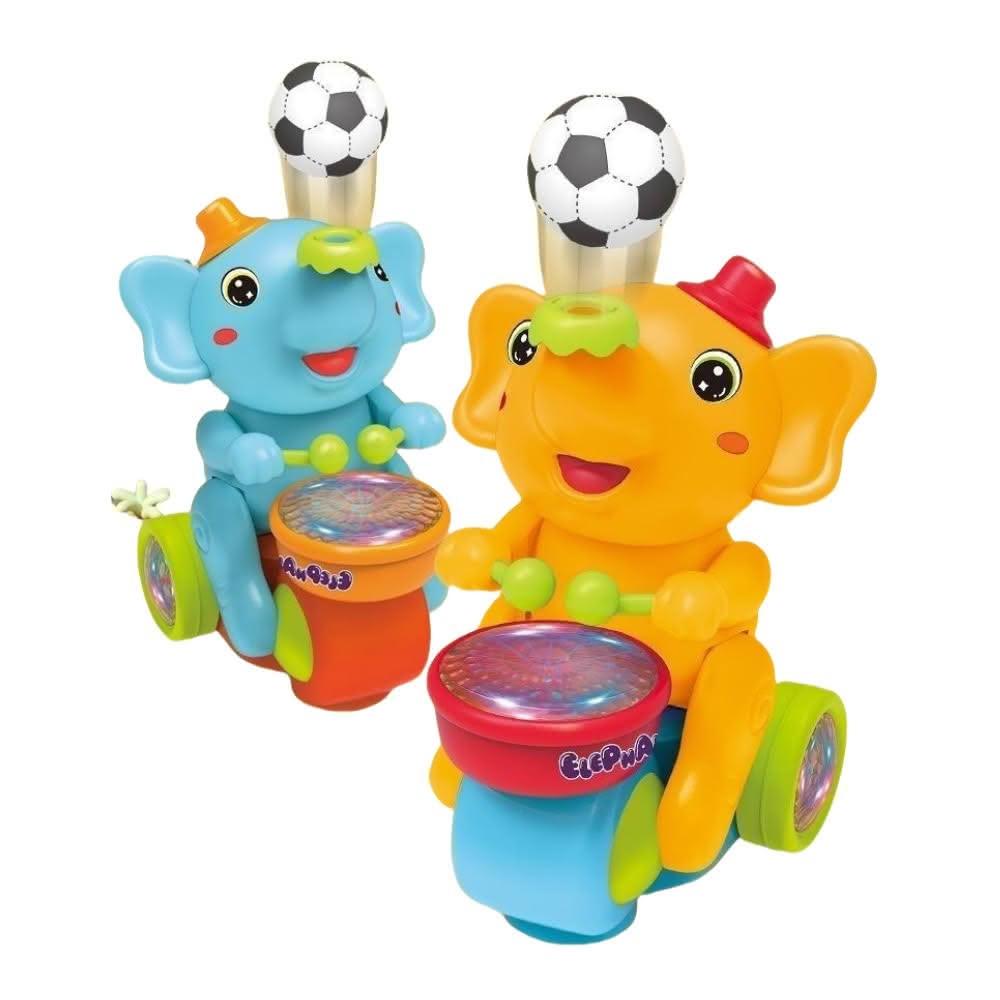 電動萬向跑跑吹球打鼓大象玩具(懸浮吹球玩具 學爬走路聲光玩具 聲光音樂玩具 敲擊音樂大象玩具)