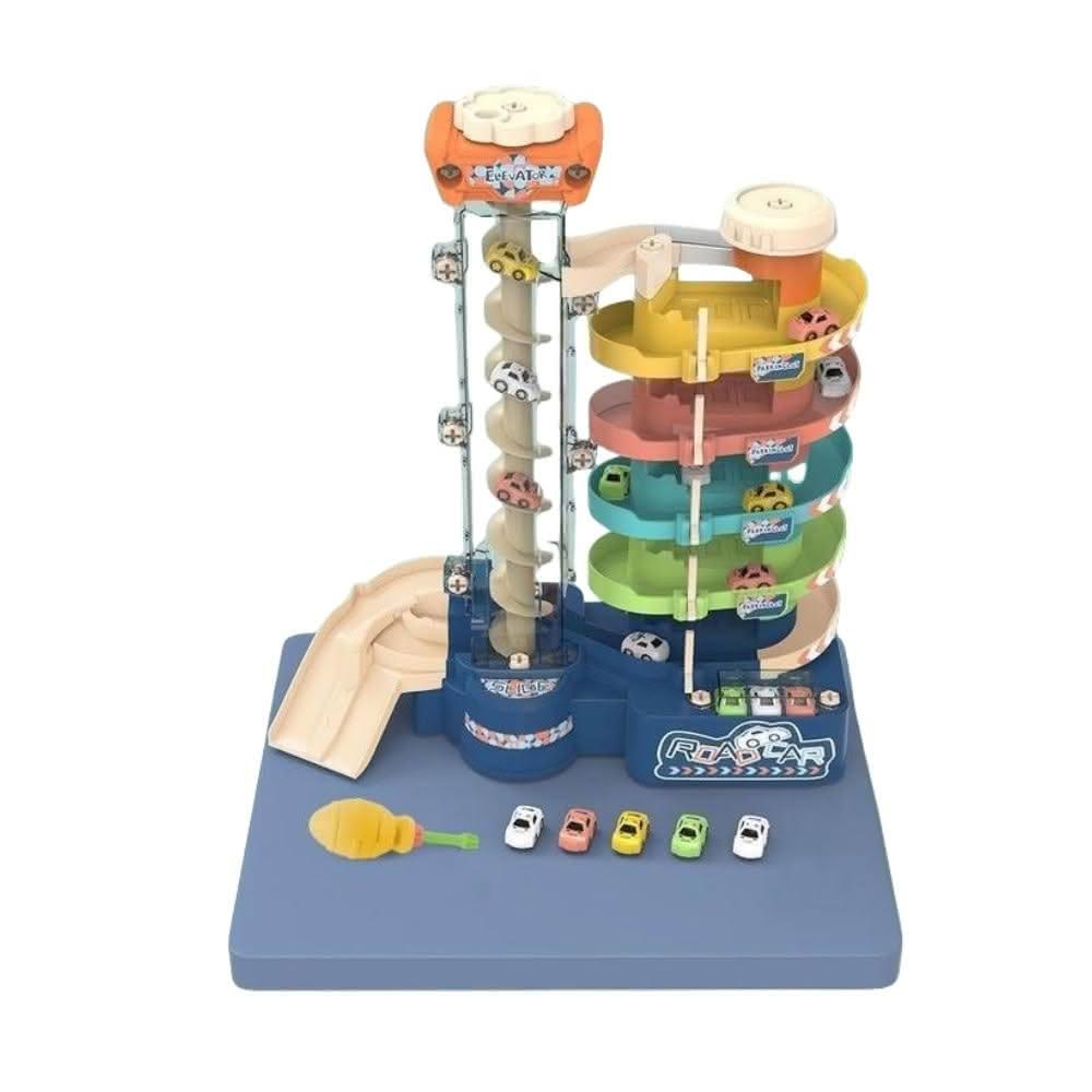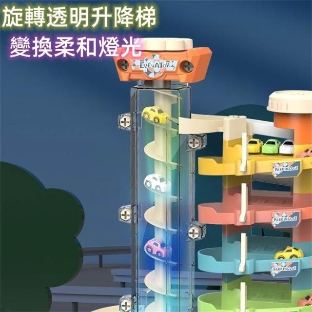 兒童電動升降立體大樓停車場汽車玩具(城市軌道旋轉滑道停車大樓 男孩最愛車車玩具)