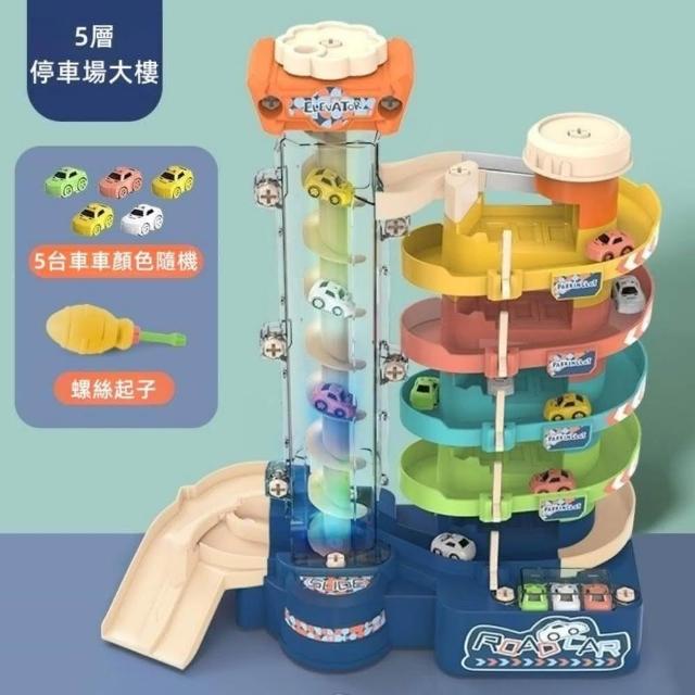 兒童電動升降立體大樓停車場汽車玩具(城市軌道旋轉滑道停車大樓 男孩最愛車車玩具)