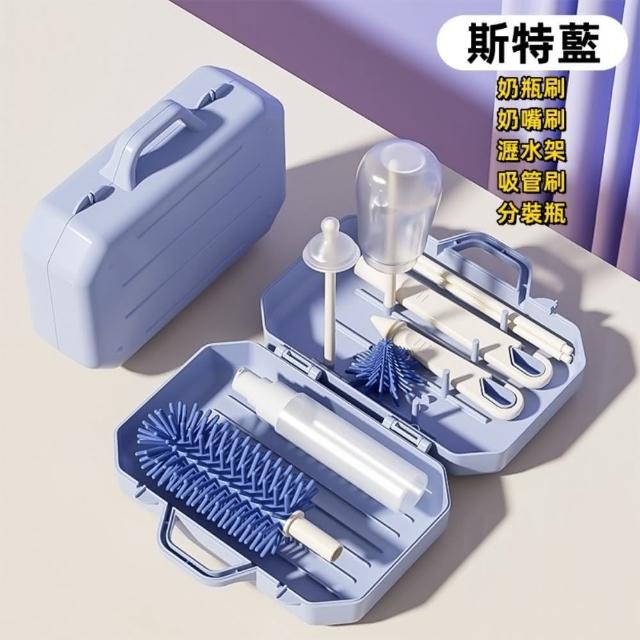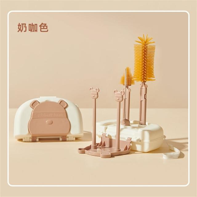 攜帶型奶瓶刷組(嬰兒矽膠奶瓶刷旅行組 奶嘴刷 杯刷 吸管刷 攜帶型奶瓶刷組 硅膠奶瓶刷具組 洗奶瓶清潔刷套)
