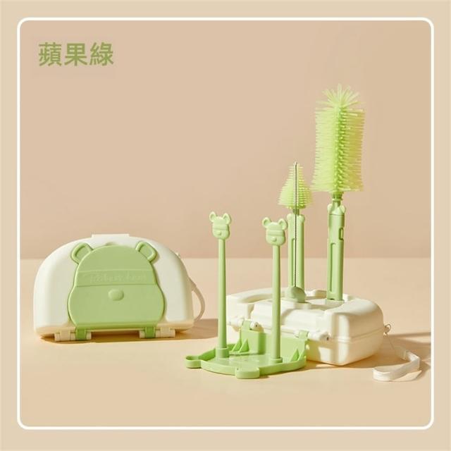 攜帶型奶瓶刷組(嬰兒矽膠奶瓶刷旅行組 奶嘴刷 杯刷 吸管刷 攜帶型奶瓶刷組 硅膠奶瓶刷具組 洗奶瓶清潔刷套)