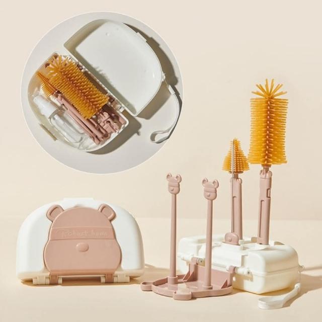 攜帶型奶瓶刷組(嬰兒矽膠奶瓶刷旅行組 奶嘴刷 杯刷 吸管刷 攜帶型奶瓶刷組 硅膠奶瓶刷具組 洗奶瓶清潔刷套)