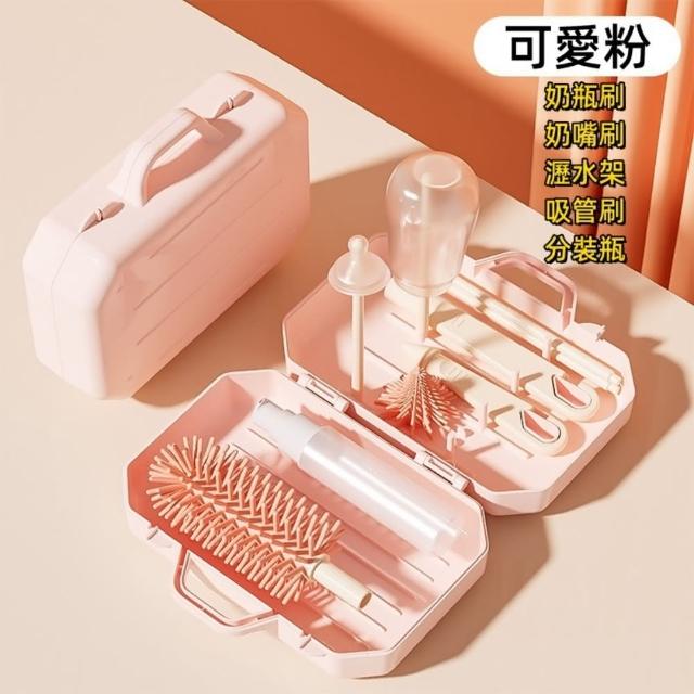 攜帶型奶瓶刷組(嬰兒矽膠奶瓶刷旅行組 奶嘴刷 杯刷 吸管刷 攜帶型奶瓶刷組 硅膠奶瓶刷具組 洗奶瓶清潔刷套)
