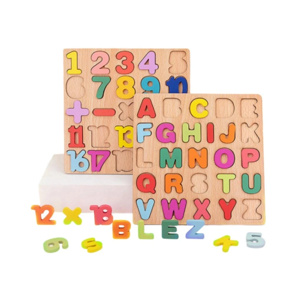 木製拼塊板英文字母數字運算(木製益智兒童忙碌板 手抓板拼圖 蒙特梭利教具蒙氏忙碌版 啟蒙玩具 早教教具 數字演算乘除 英文認知)