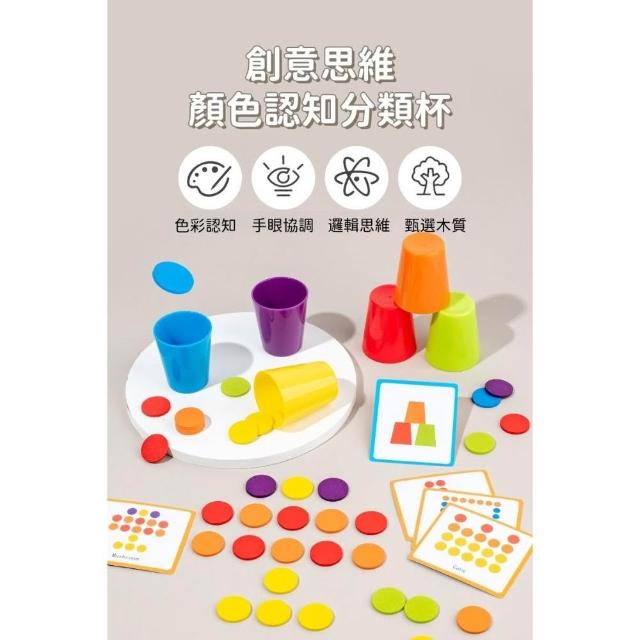 蒙氏顏色分類疊疊杯教具(蒙特梭利教具數字顏色配對玩具 木製教具顏色配對 木製配對啟蒙教具 顏色認知玩具)