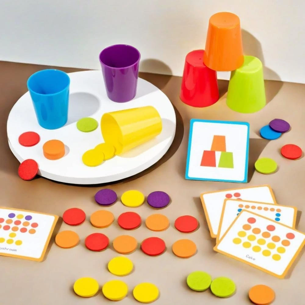 蒙氏顏色分類疊疊杯教具(蒙特梭利教具數字顏色配對玩具 木製教具顏色配對 木製配對啟蒙教具 顏色認知玩具)