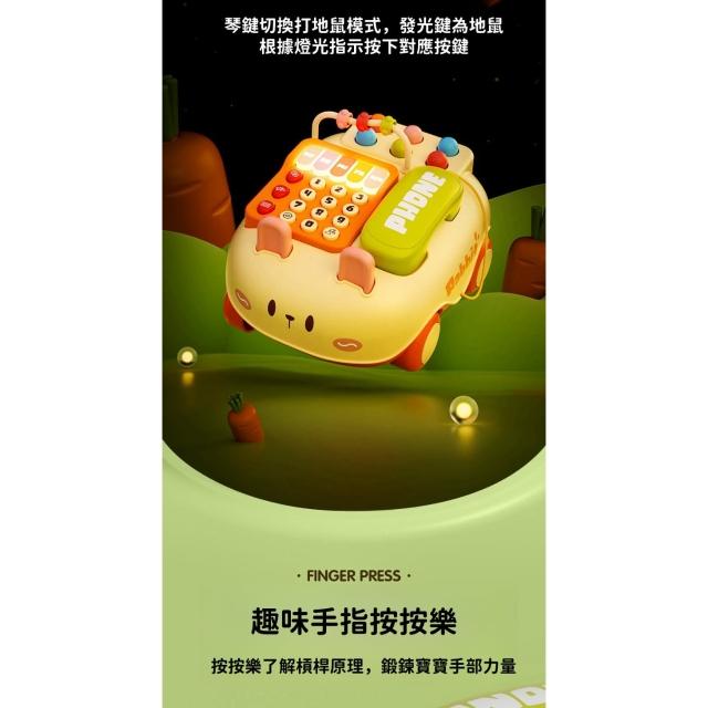 仿真電話音樂玩具 拉繩學步玩具車(萌兔音樂電話拉繩學步車 早教故事機 電話機玩具 寶寶益智音樂 打地鼠仿真玩具 嬰兒玩具 音樂玩具)
