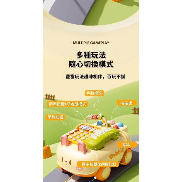 仿真電話音樂玩具 拉繩學步玩具車(萌兔音樂電話拉繩學步車 早教故事機 電話機玩具 寶寶益智音樂 打地鼠仿真玩具 嬰兒玩具 音樂玩具)