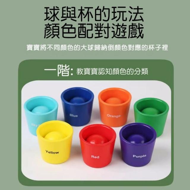 木製啟蒙多功能敎具玩具(七色球分類杯 蒙式教具 嬰幼兒童早敎 益智玩具 多維啟蒙 感官訓練配對認知 木製玩具 顏色認知玩具)