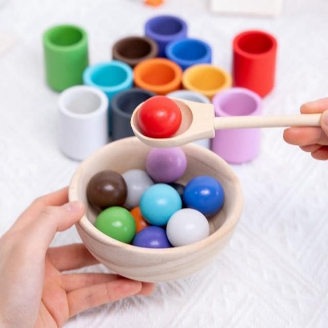 木製啟蒙多功能敎具玩具(七色球分類杯 蒙式教具 嬰幼兒童早敎 益智玩具 多維啟蒙 感官訓練配對認知 木製玩具 顏色認知玩具)