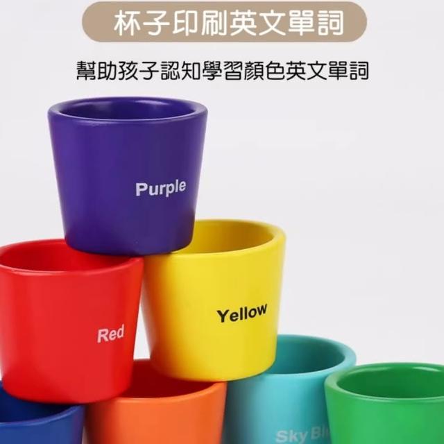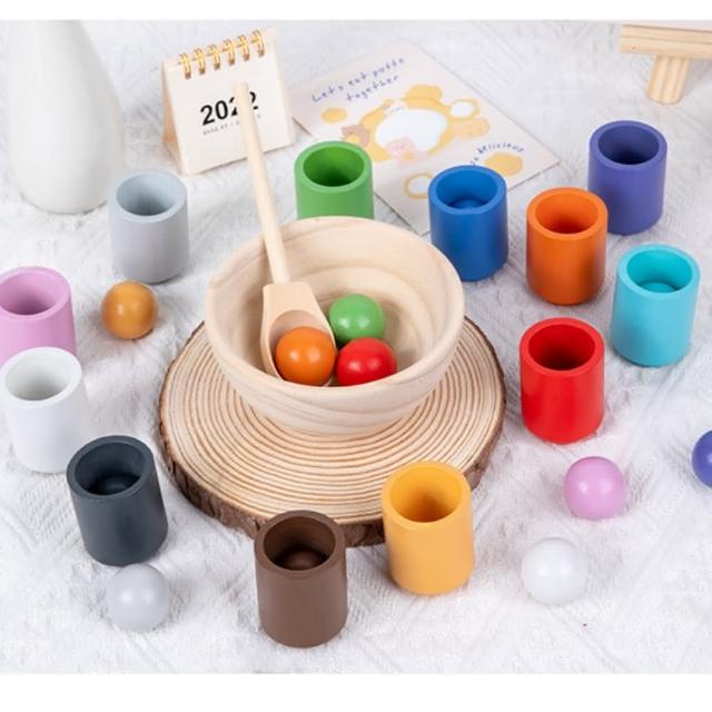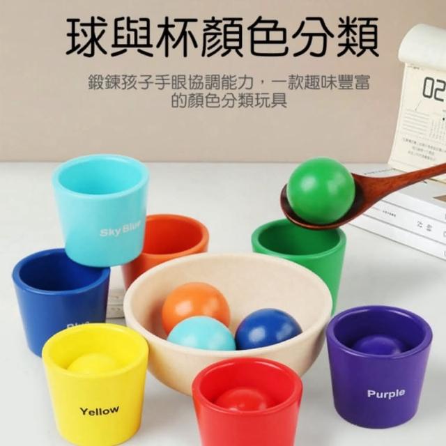 木製啟蒙多功能敎具玩具(七色球分類杯 蒙式教具 嬰幼兒童早敎 益智玩具 多維啟蒙 感官訓練配對認知 木製玩具 顏色認知玩具)