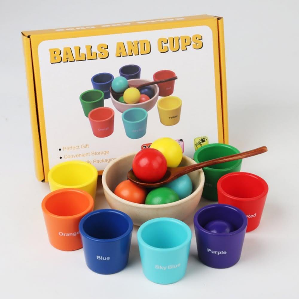 木製啟蒙多功能敎具玩具(七色球分類杯 蒙式教具 嬰幼兒童早敎 益智玩具 多維啟蒙 感官訓練配對認知 木製玩具 顏色認知玩具)