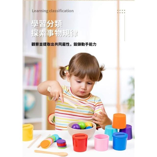 木製彩球與投幣配對杯分類 (木製投幣顏色配對玩具 蒙特梭利教具 聖誕禮物 木製教具球與杯顏色配對 兒童益智玩具)