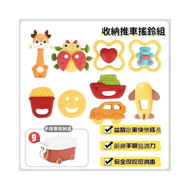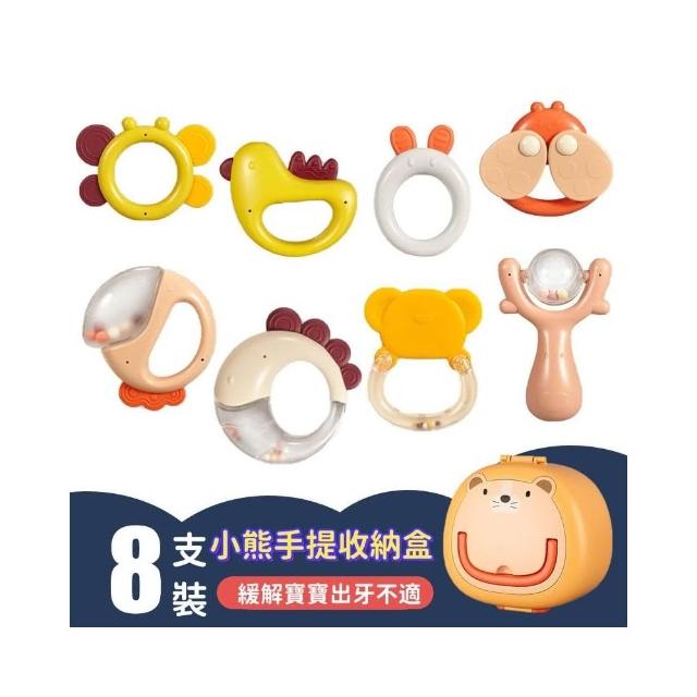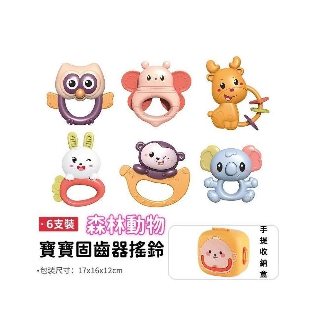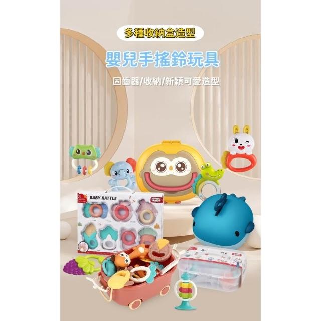 嬰兒手搖鈴固齒器(造型收納盒 固齒器 寶寶安撫玩具 寶寶玩具 嬰兒玩具 可愛動物手搖鈴 互動玩具 牙膠玩具)